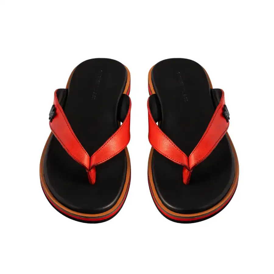Flame Red premium sandals offer casual yet suave comfort for men and women. Made from genuine smooth calfskin leather, they are the perfect way to add sophistication to any summer style. Supportive soles are crafted from EVA and TPR to withstand your beach resort adventures, while the bouncy, cushioned lining provides extra comfort for your feet everywhere you go. Stitched with precision, they create a polished look even in leisurely settings. The Leeds Collection sandals are offered in a variety of colors to complement any ensemble.